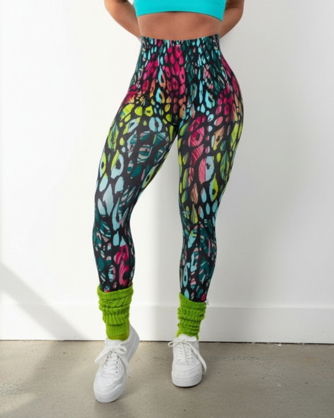 Enhance your glutes with our Glute lift soft seamless booty scrunch leggings! The buttery soft nylon spandex material provides extreme comfort while the booty lift panels and high ribbed waist offer tummy control. These leggings are also squat proof and feature a fun and vibrant watercolor print with elegant black detailing. Upgrade your workout wardrobe with these stretchy and flattering leggings.