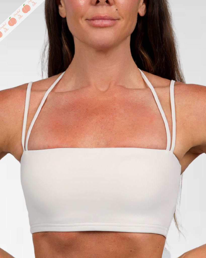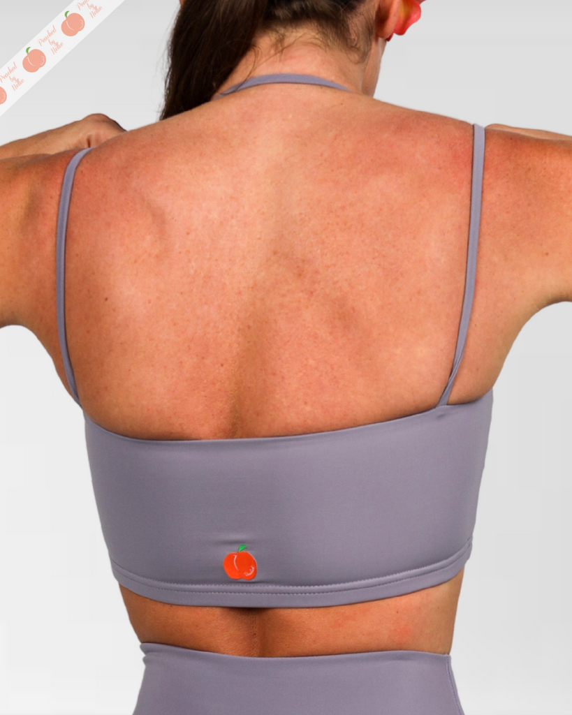 Experience the perfect blend of comfort and support with this seamless sports bra designed for active lifestyles. Crafted from the same luxuriously soft, stretchy fabric as our matching leggings, it features a flattering halter neckline paired with delicate spaghetti straps for secure, adjustable fit. Removable pads offer customizable support, while the buttery-smooth, seamless construction ensures a sleek silhouette under any outfit. Built to last with durable materials that maintain their shape, this bra delivers all-day coziness without compromise. True to size with a generous fit—if you're between sizes, we recommend sizing up. The light grey shade features a subtle lilac undertone for understated elegance.